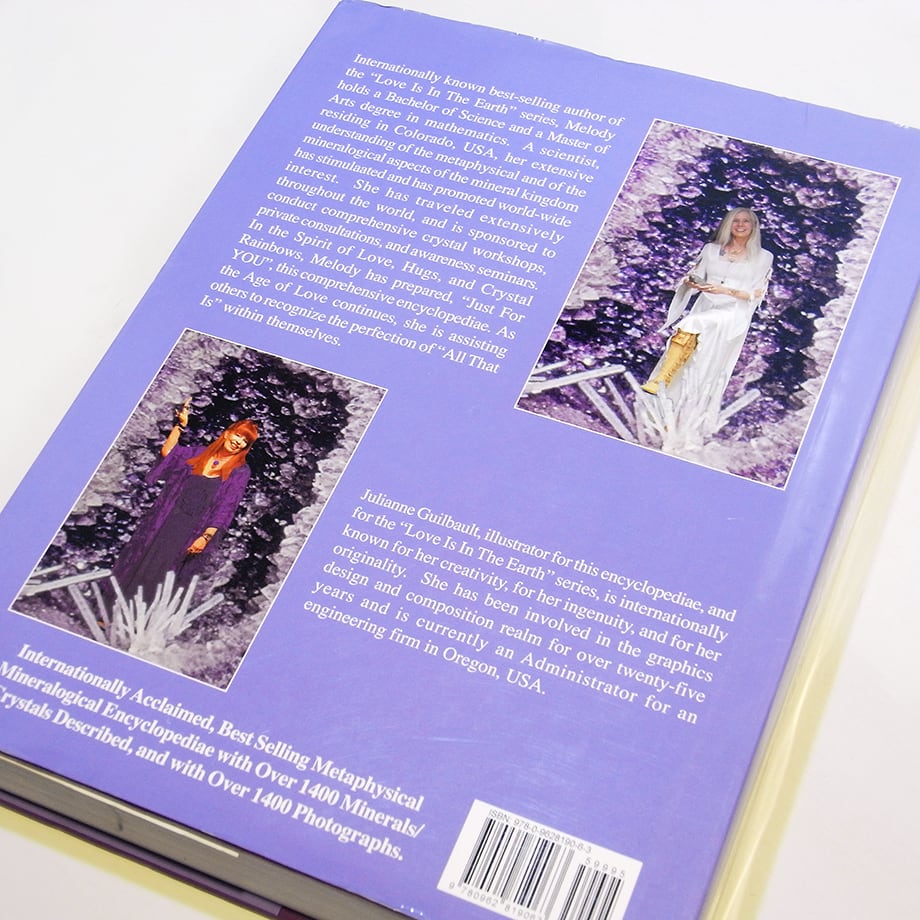 メロディさんの著書「ラブ・イズ・イン・ディ・アース」シリーズの一冊で、彼女のクリスタル研究の集大成であるクリスタルと鉱物の百科事典、『ラブ・イズ・イン・ディ・アース: ザ・クリスタル・アンド・ミネラル・エンサイクロペディア』です 1400種類を超える鉱物のメタフィジカルな資質について、これほど詳細に、分析的に、また多次元的に研究され、その知見を惜しみなく提供している著作は世界的にも類を見ないもので、内容は質量共に他のクリスタルに関する辞典や出版物すべてを圧倒しています また、巻頭にはクリスタルの扱い方、振動数の出し方、エリクサーの作り方、各シャクラや重要な概念・語句の定義や意味の説明が網羅されています メロディさんが生涯をかけて研究を重ねた成果が、この一冊によって惜しみなく公開されています クリスタルやミネラルの未だ知られざる働きについて、この一冊を超える著作が現れるには、おそらく次のミレニアムまで待つことになると思います