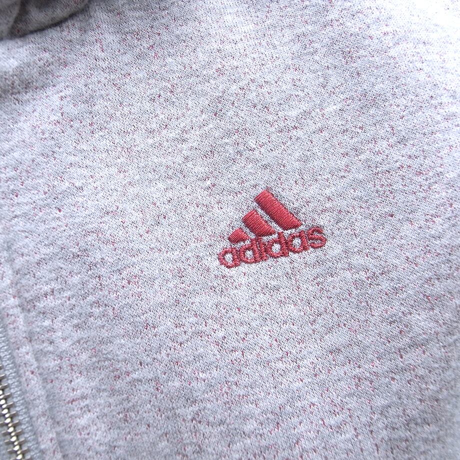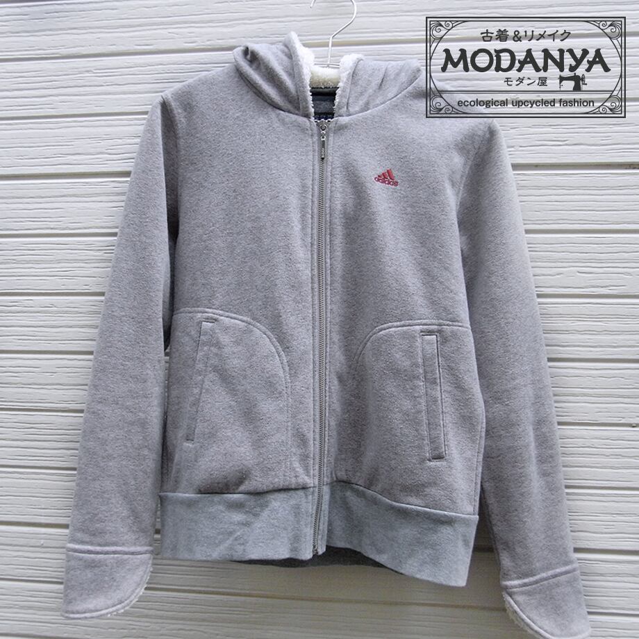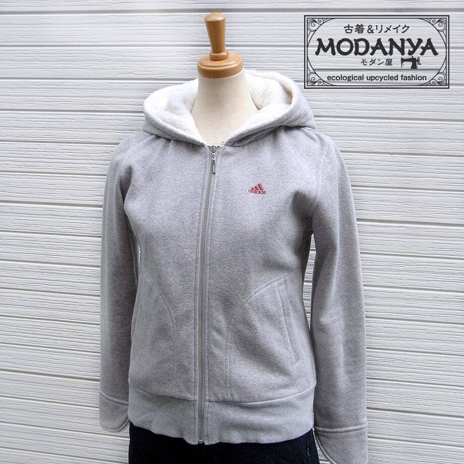 [hu0445]Adidas アディダス グレー&赤ラメ・裏起毛フード袖口ボア付きパーカー
