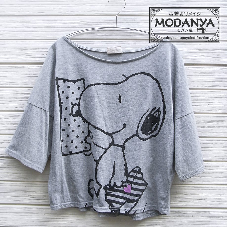 Peanutsのグレーのスヌーピー・七分袖カットソーです。