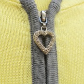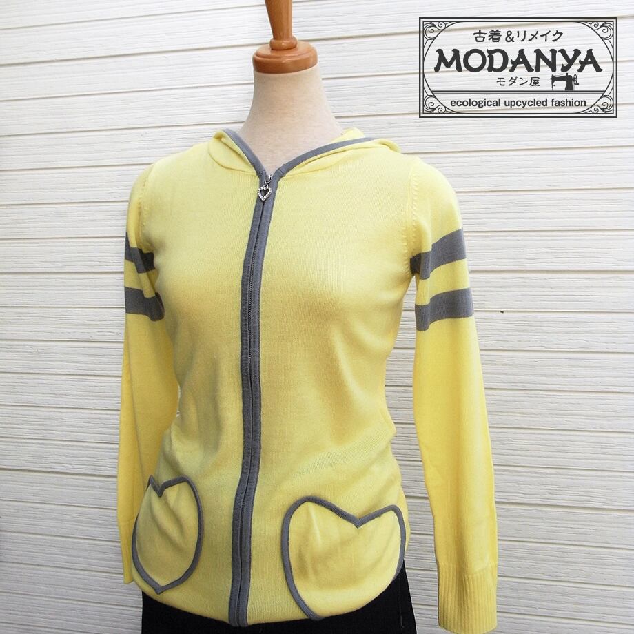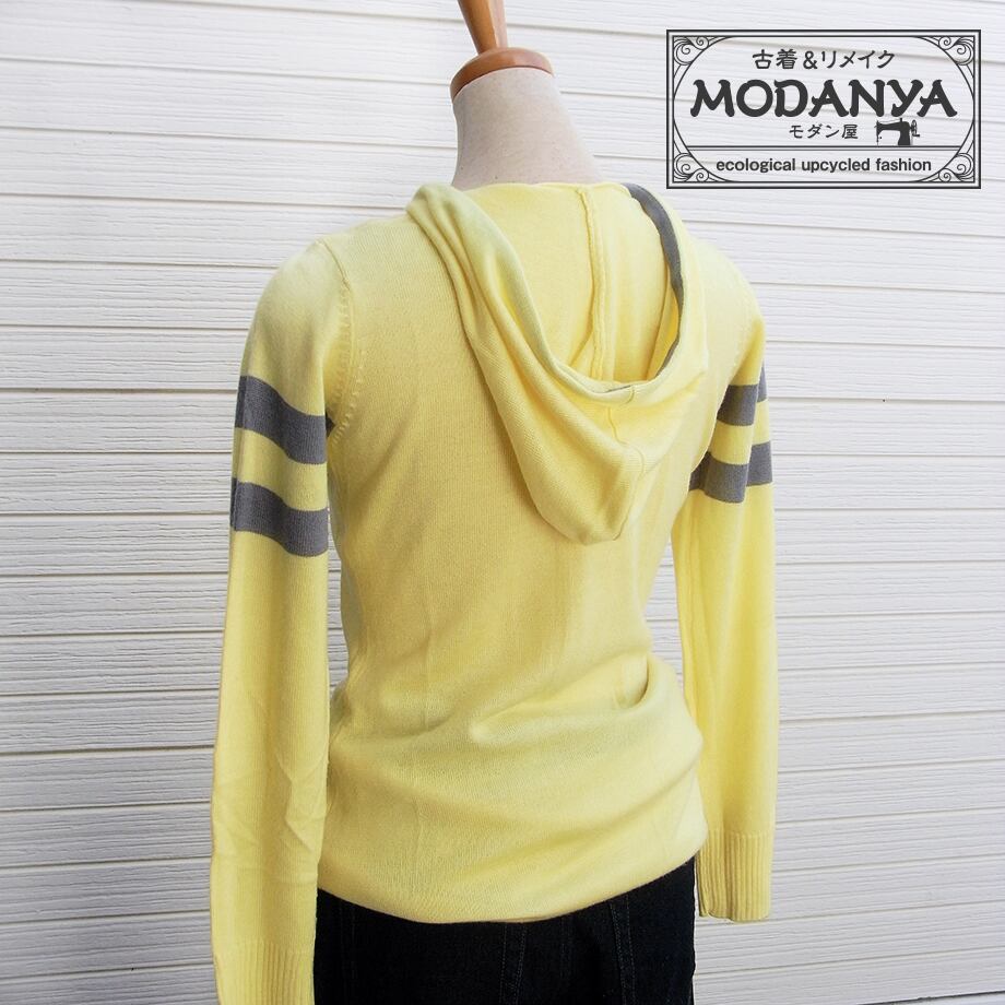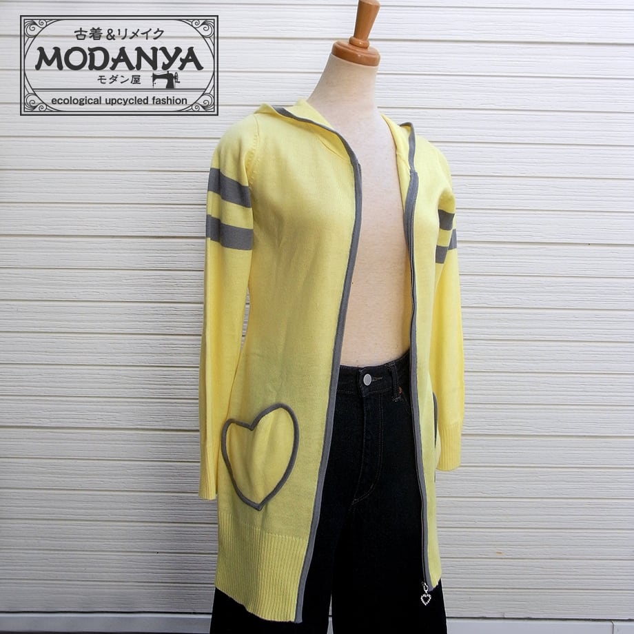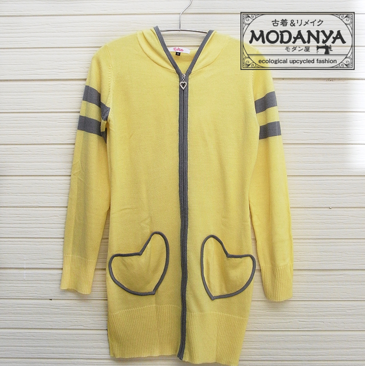 ピンクラテのレモンイエローのロングニットパーカーです。