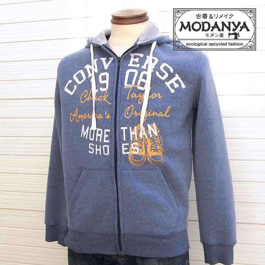 [hu0455]コンバース CONVERSE 薄い紺色裏起毛パーカー LL