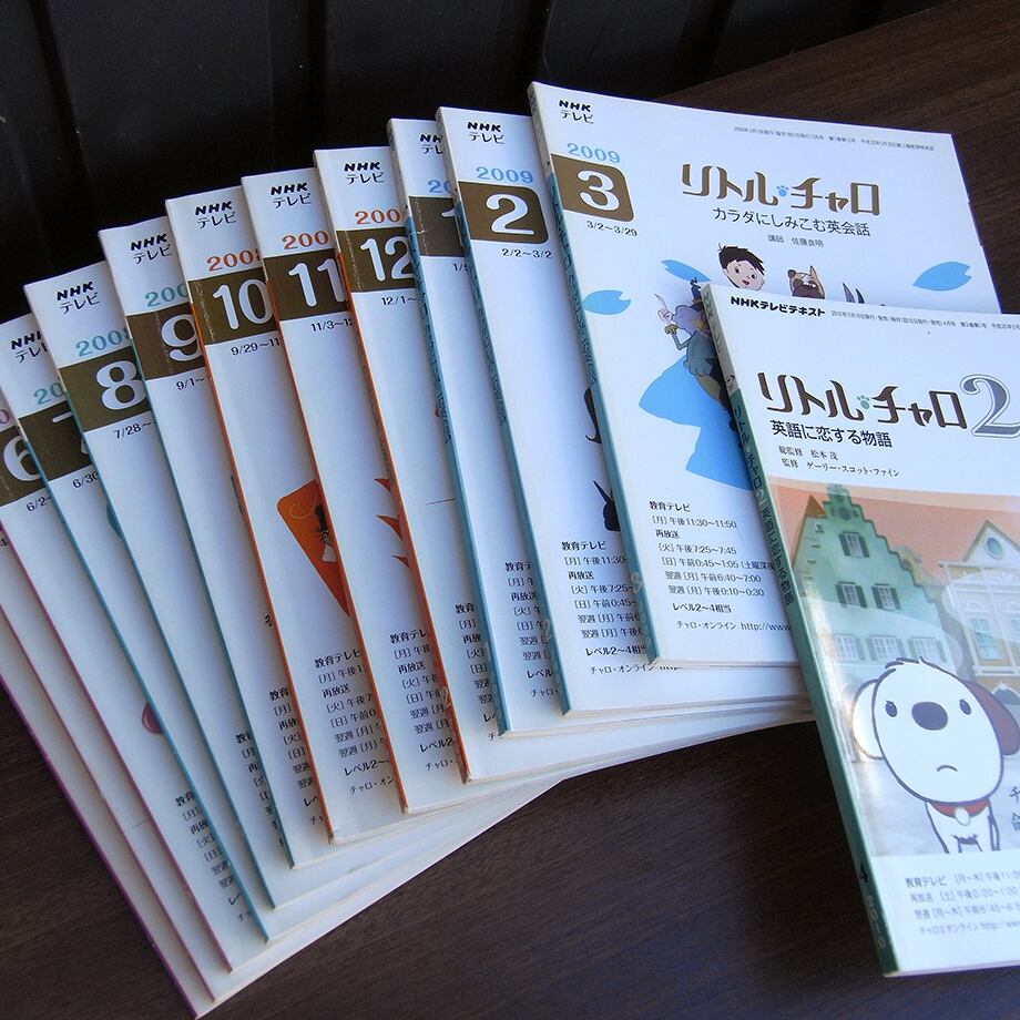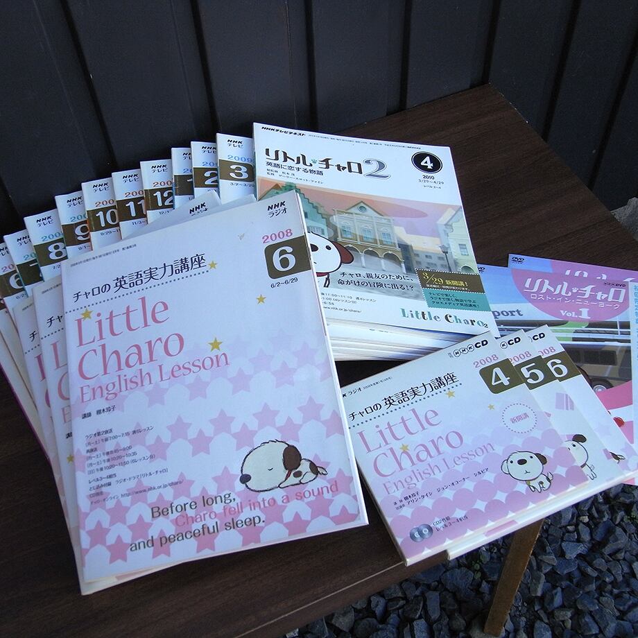 ● タイトル ⚫︎NHKテレビ・リトルチャロ カラダにしみこむ英会話(2008.4,5,6,7,8,9,10,11,12,2009.1,2,3) ⚫︎NHKテレビ・リトルチャロ2 英語に恋する物語(2010.4) ⚫︎NHKラジオチャロの英語実力講座(2008.4,5,6) 16冊セット+CD3枚+チラシ2枚