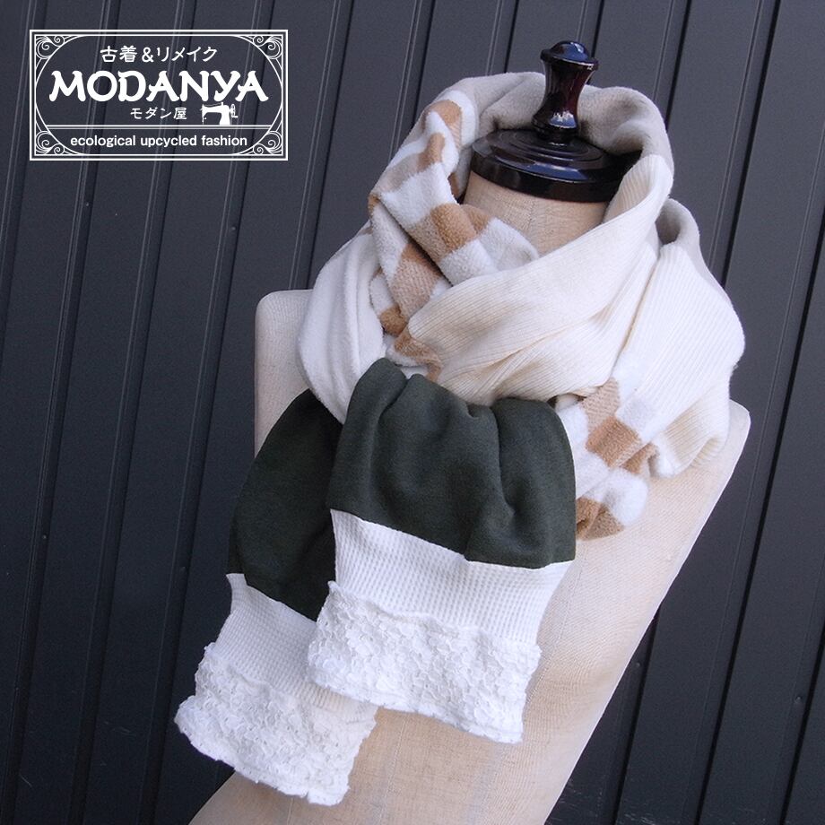 いろいろな古着を繋ぎ合わせ、上品な色合いのロングロングマフラーに仕上げました。