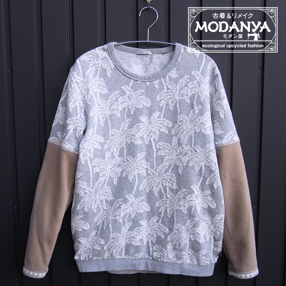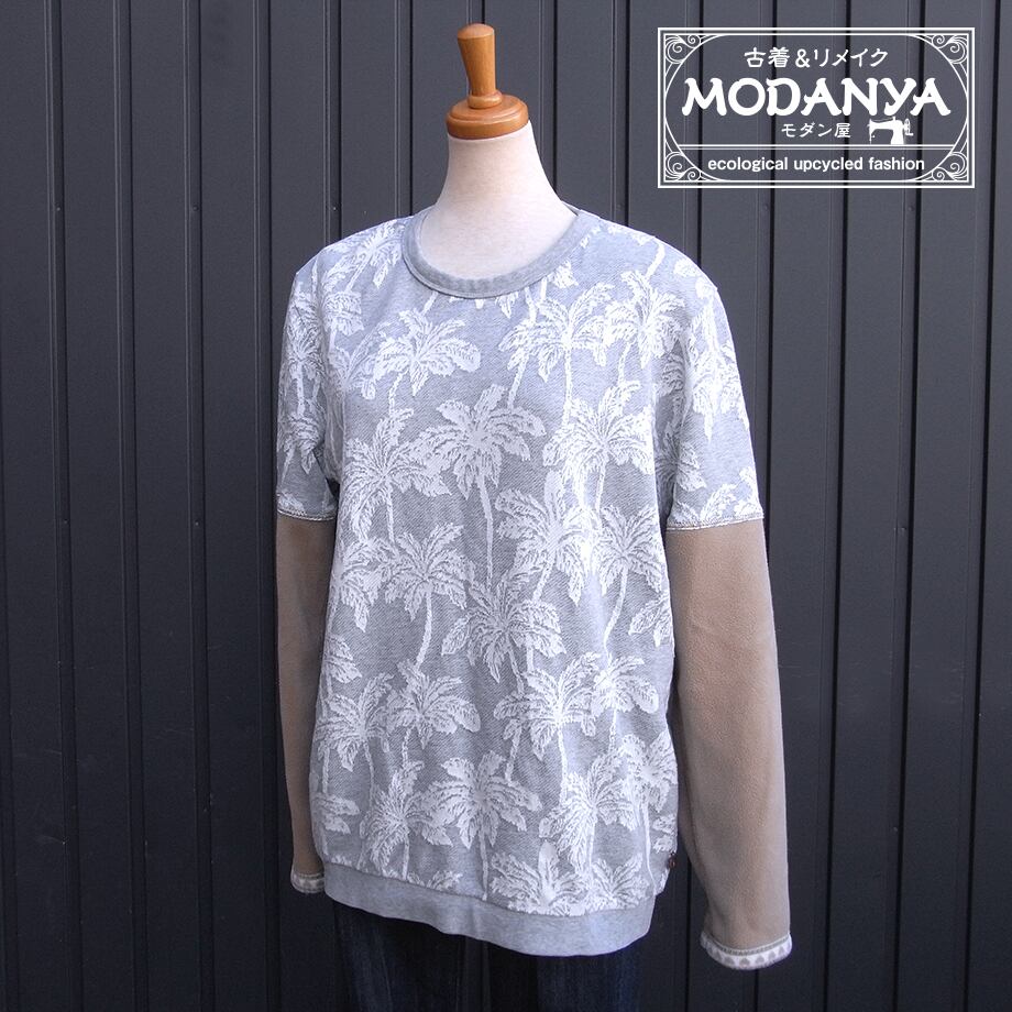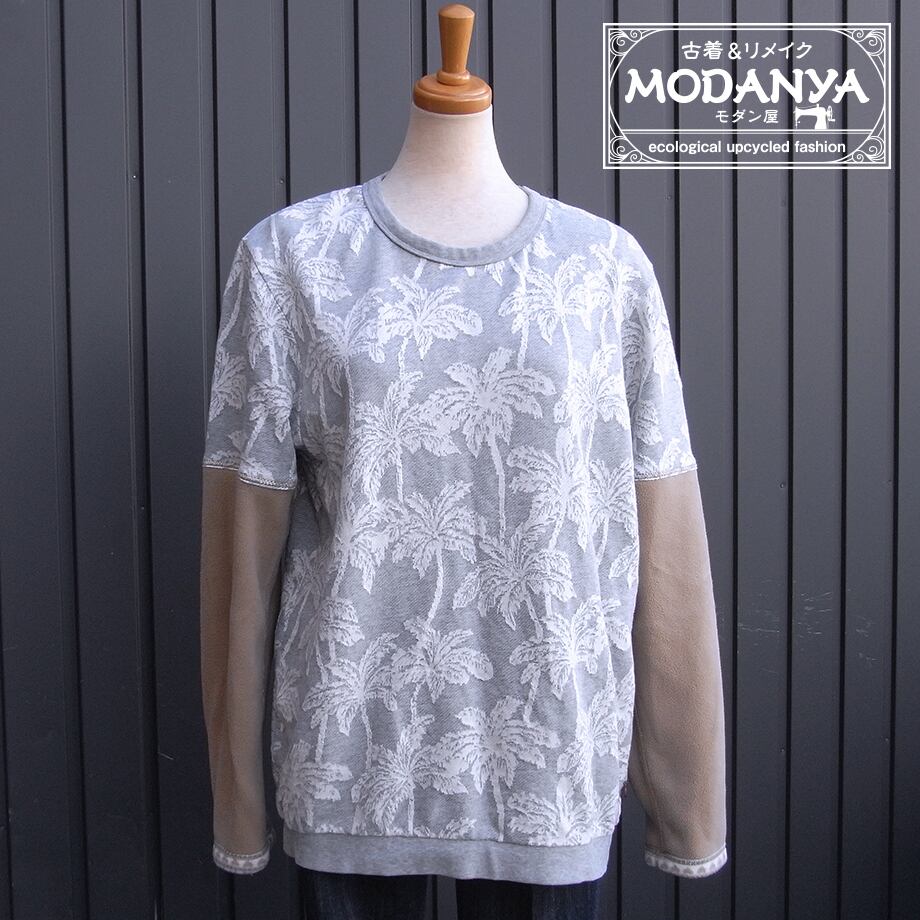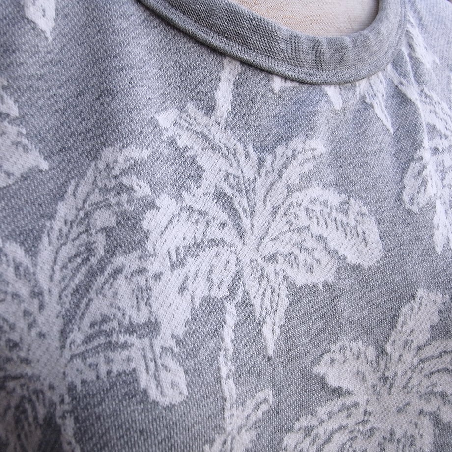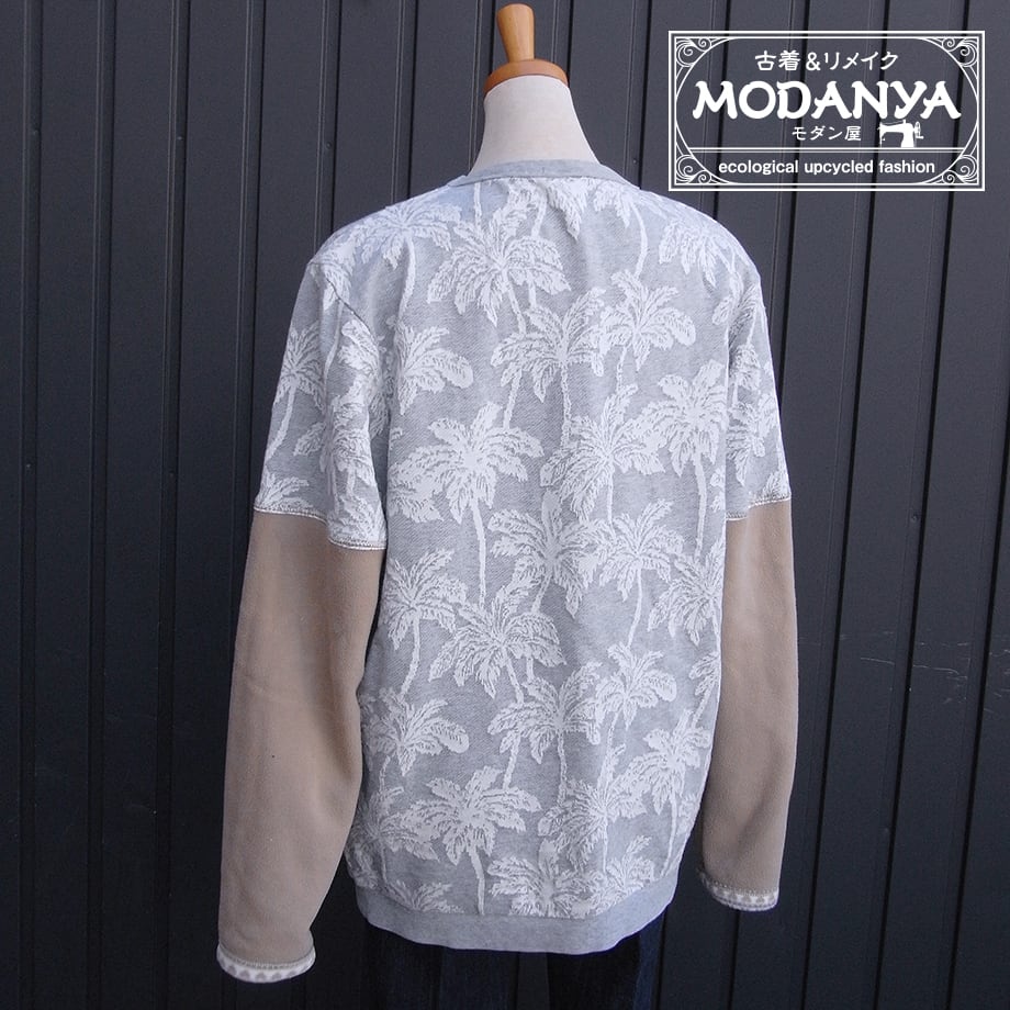 ヤシの木柄の袖フリーストレーナーです。