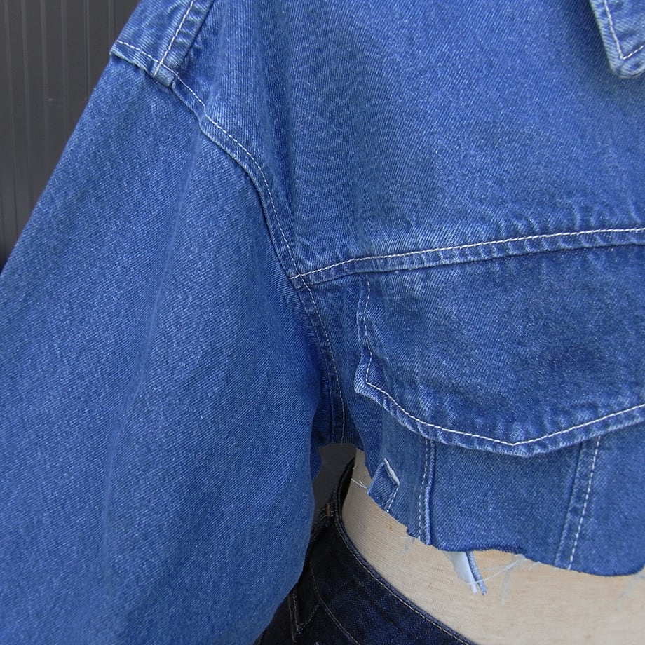 切りっぱなしの丈短Gジャンです。