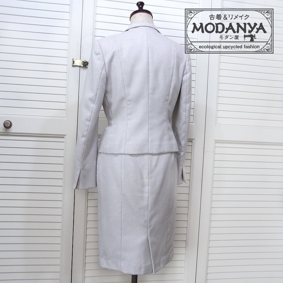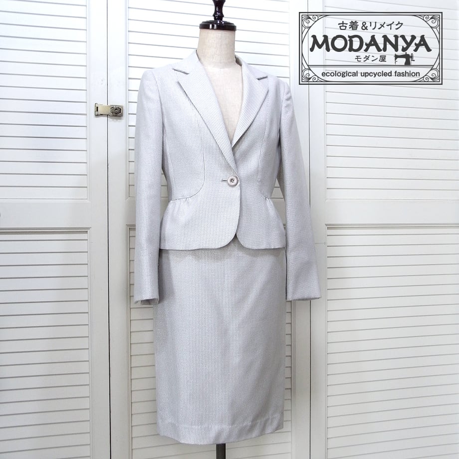 EMMA JAMESのライトチャコールグレー(上品なラメ入り)膝丈スーツです。