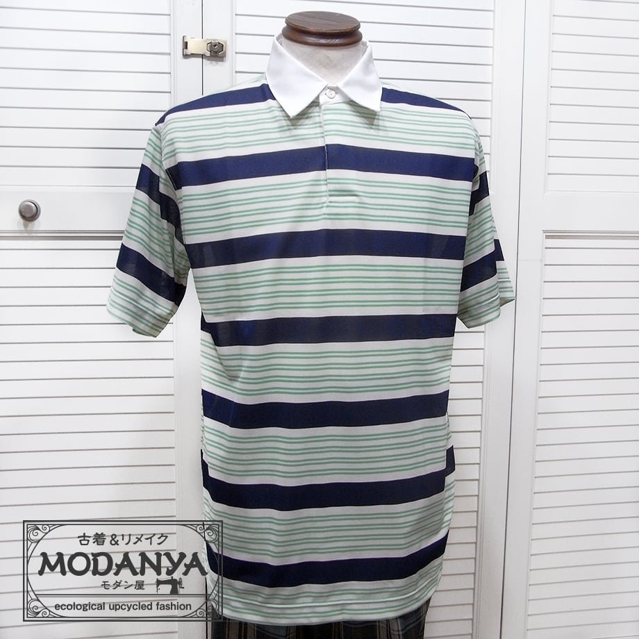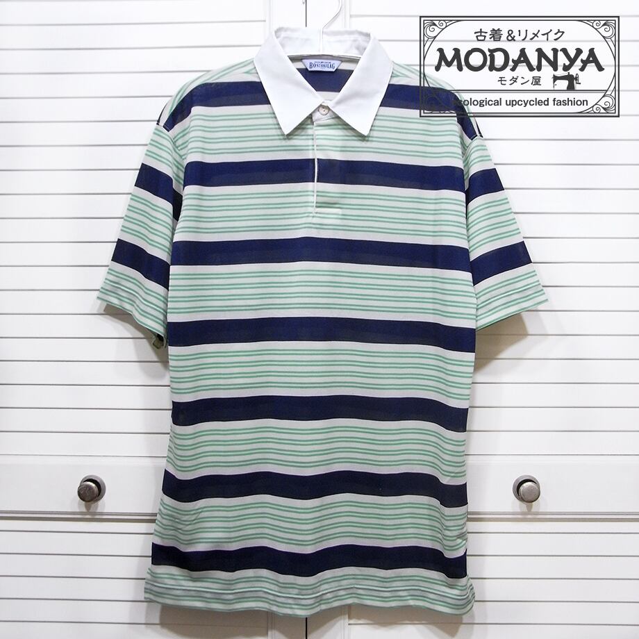 [hu0495]BOSTONELAG ベージュ地・紺&グリーン・ポロシャツ L