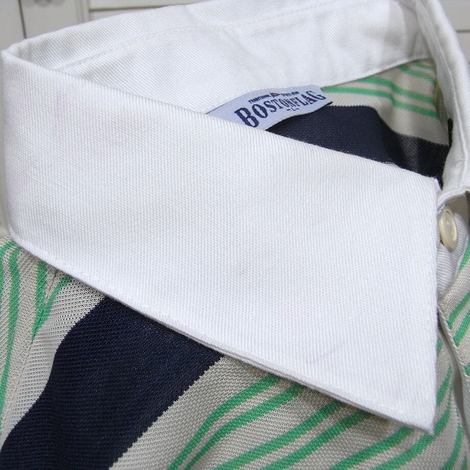 BOSTONELAGのベージュ地・紺&グリーン・ポロシャツです。