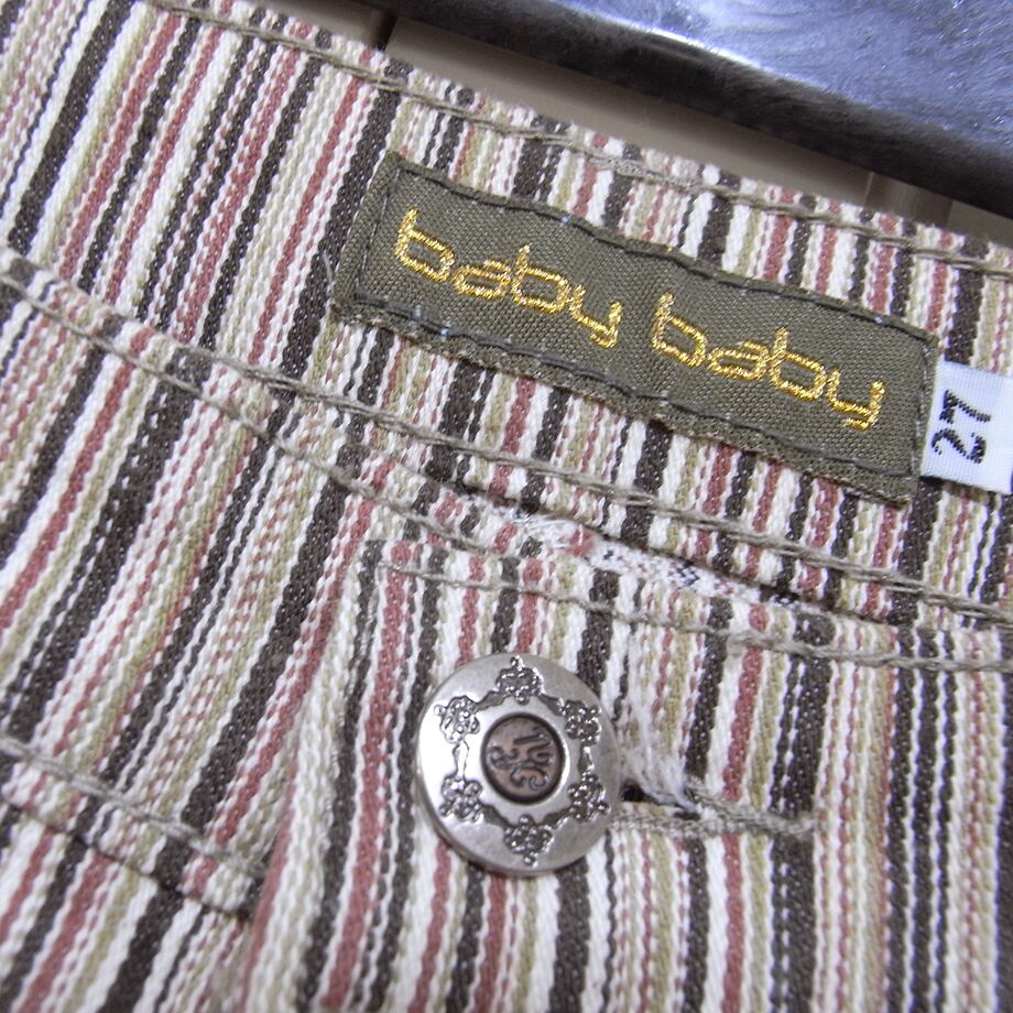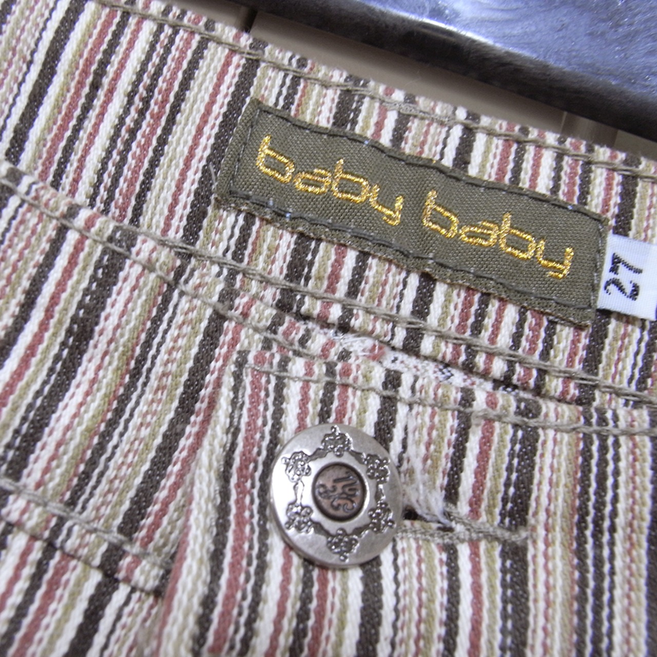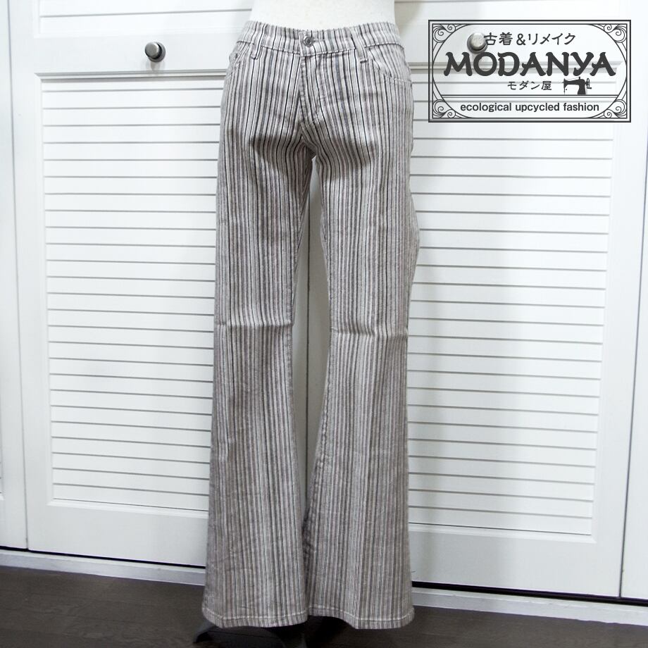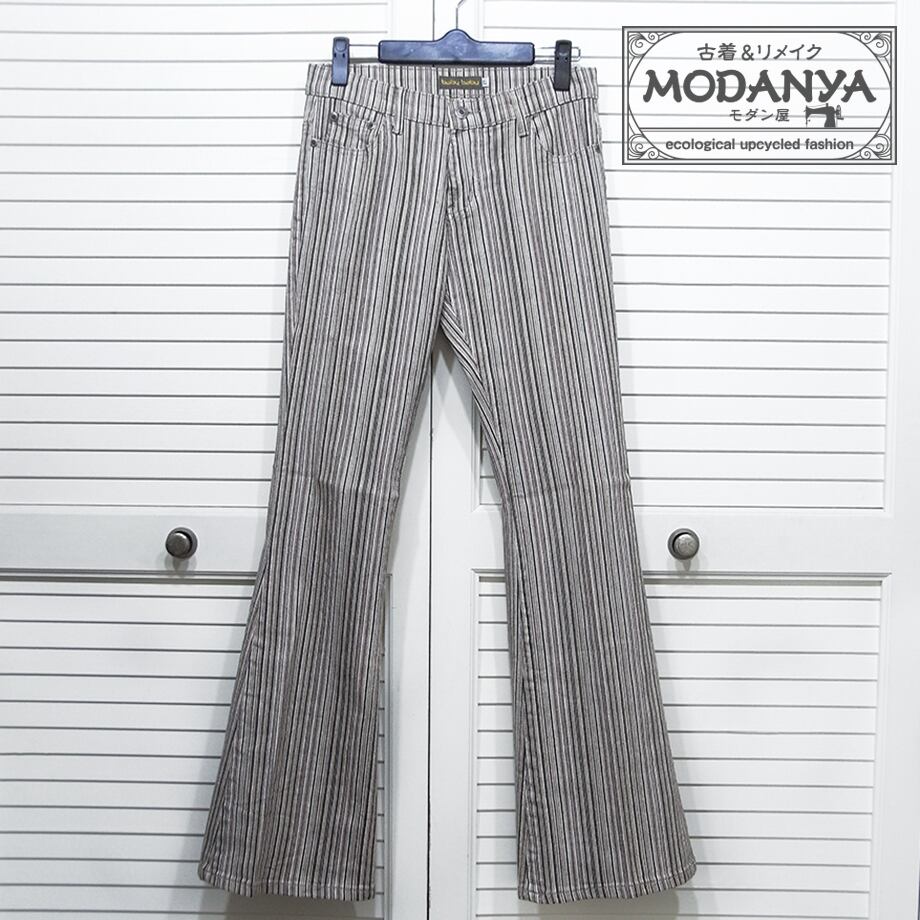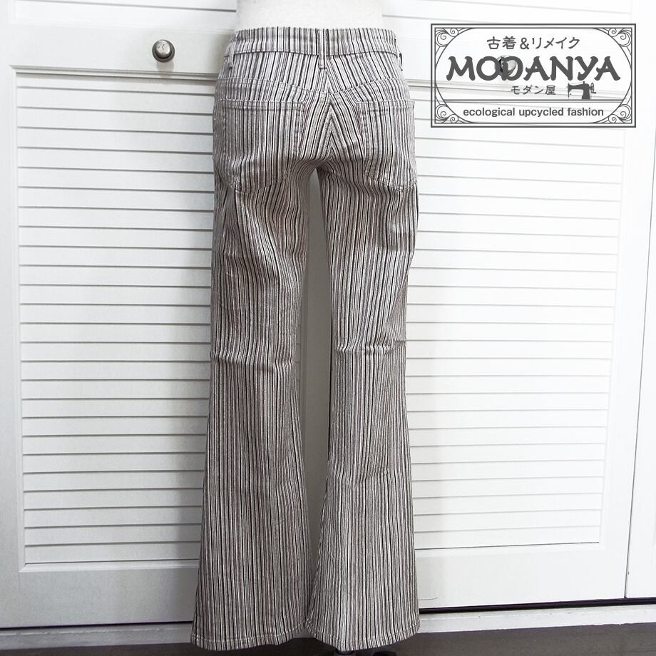 サイズ:ウエスト74cm、ヒップ98cm、ワタリ幅24cm、裾幅28cm、股上21.5cm、股下80cm(平置きでの実寸)