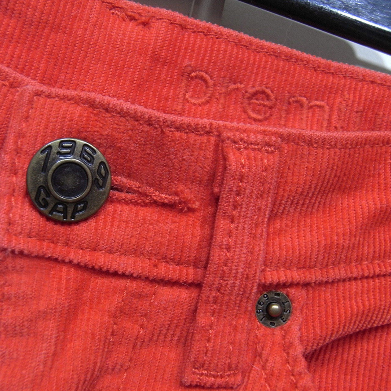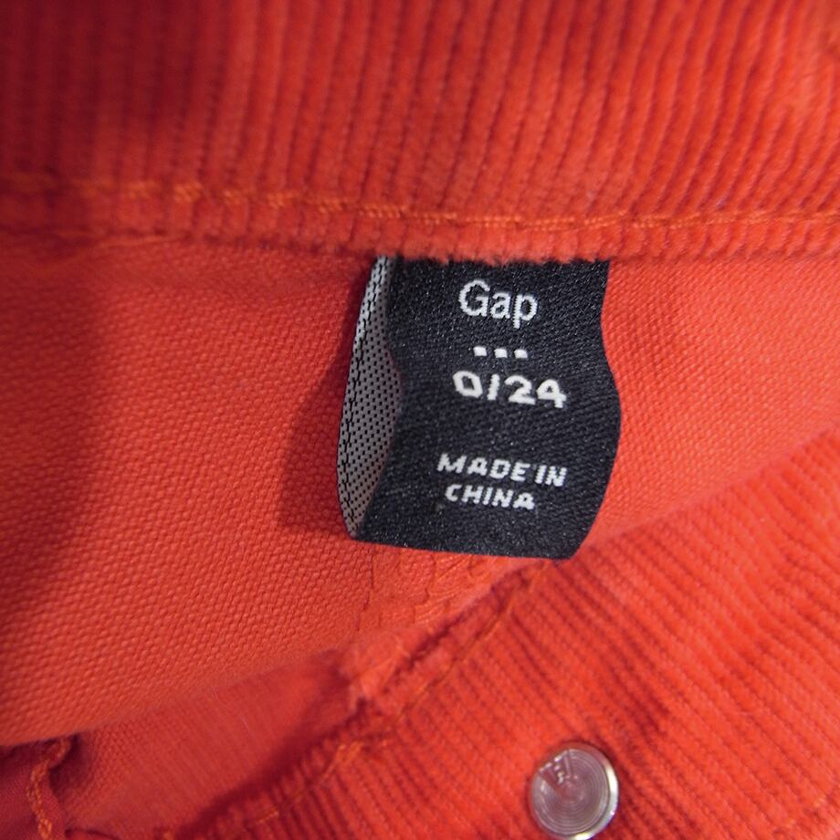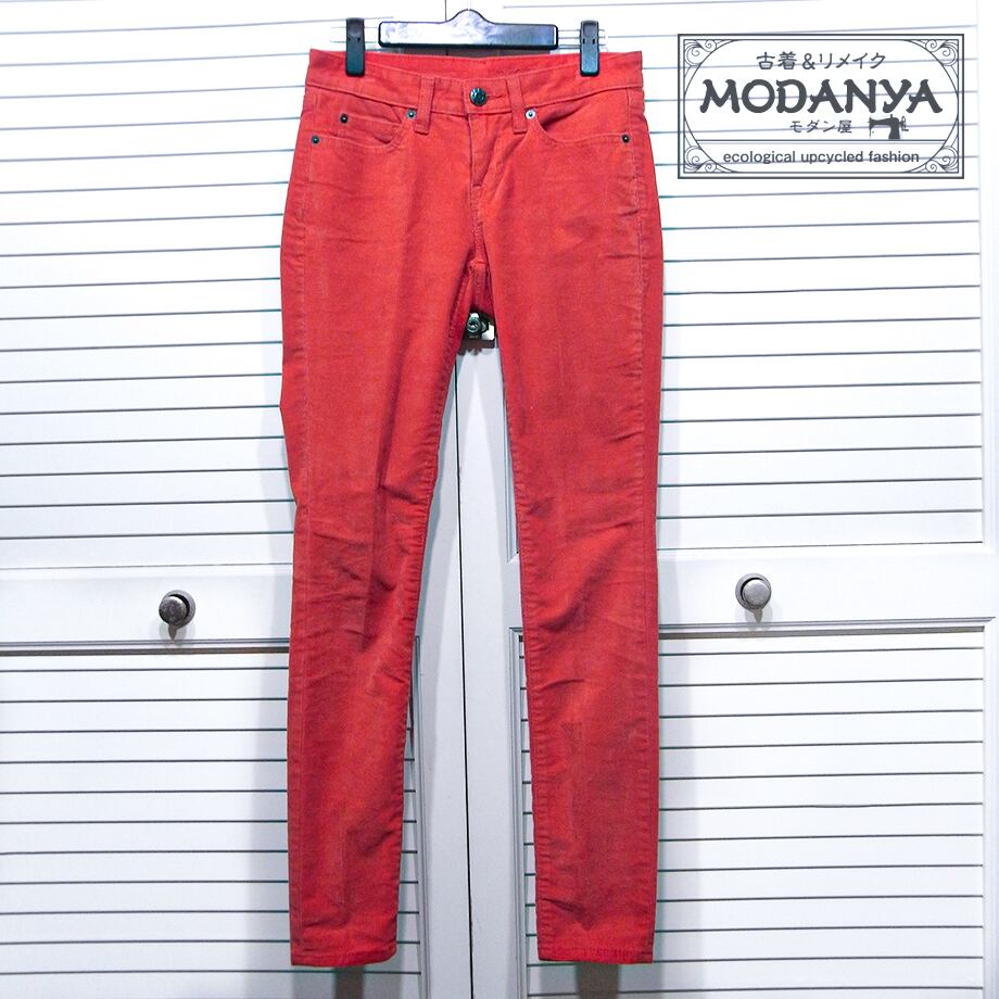 ギャップのオレンジ・朱色のコーデュロイ・スリム・パンツです。