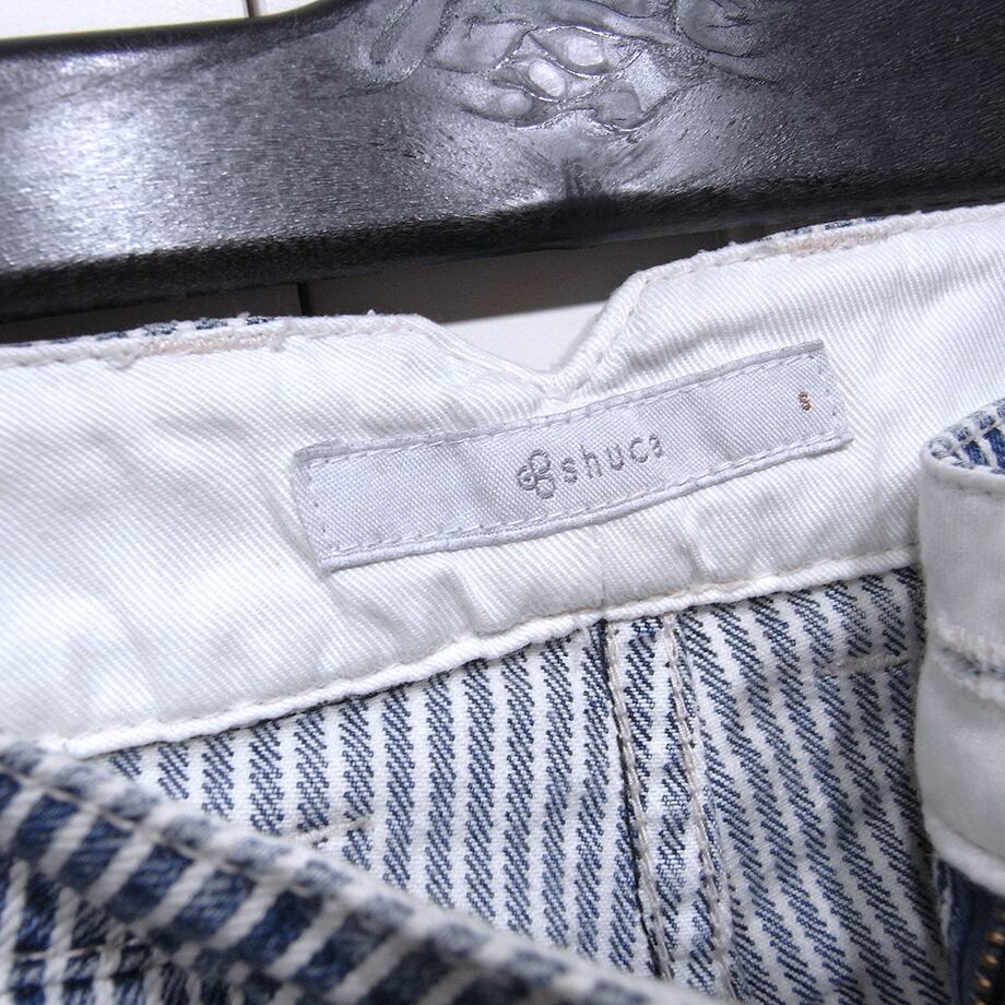 shuca ヒッコリー・クロップド・デニムパンツです。