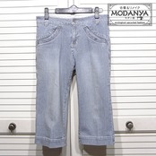 サイズ:ウエスト76cm、ヒップ96cm、ワタリ幅25cm、裾幅20.5cm、股上22cm、股下45cm(平置きでの実寸)