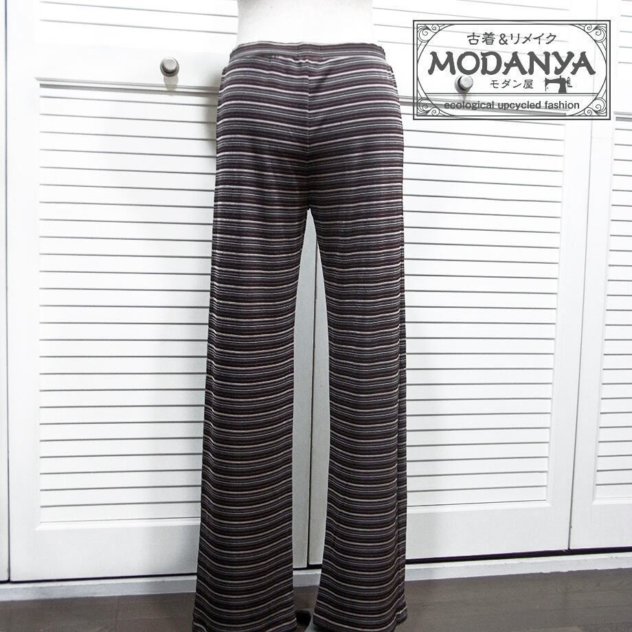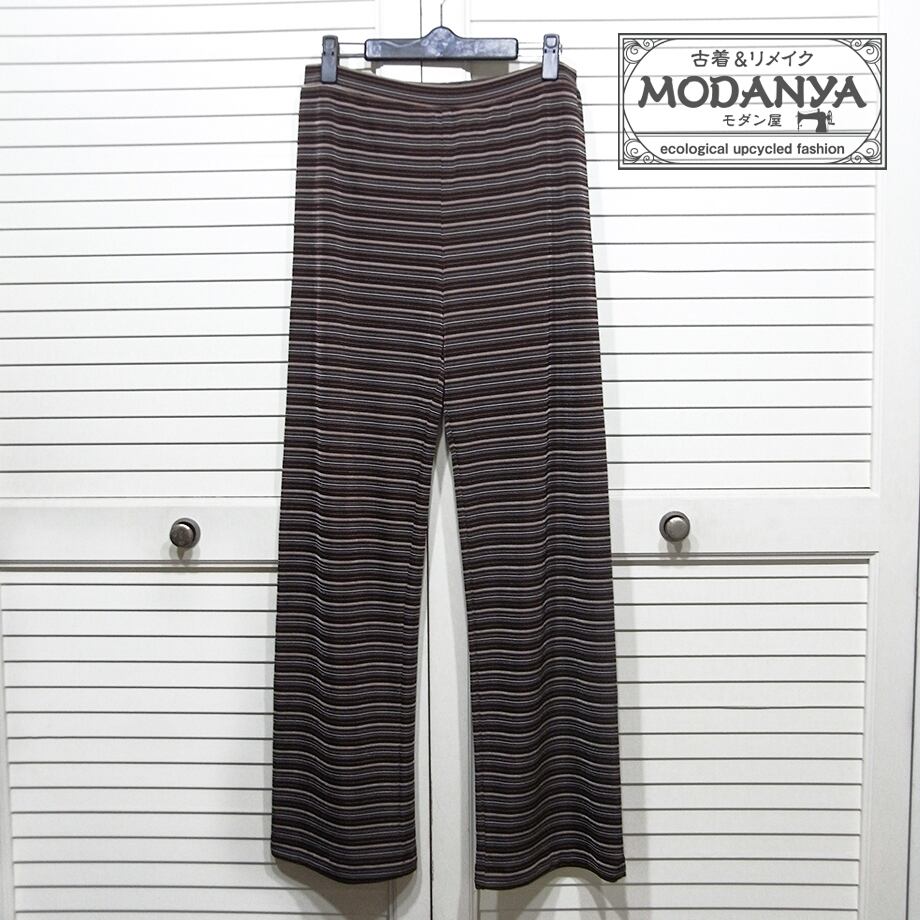 インディオの茶系ボーダー・バギーパンツです。