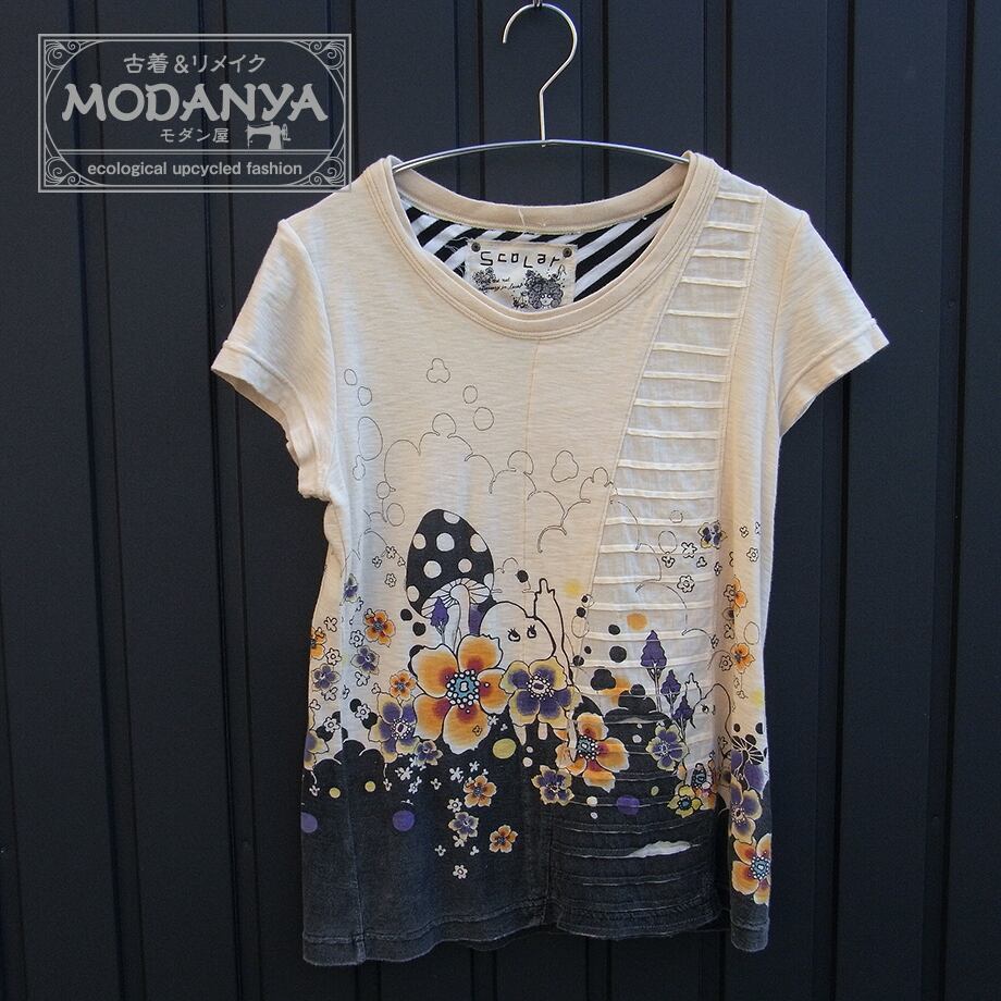 [hu0006]ScoLarスカラー ベージュ色のイラストTシャツ M
