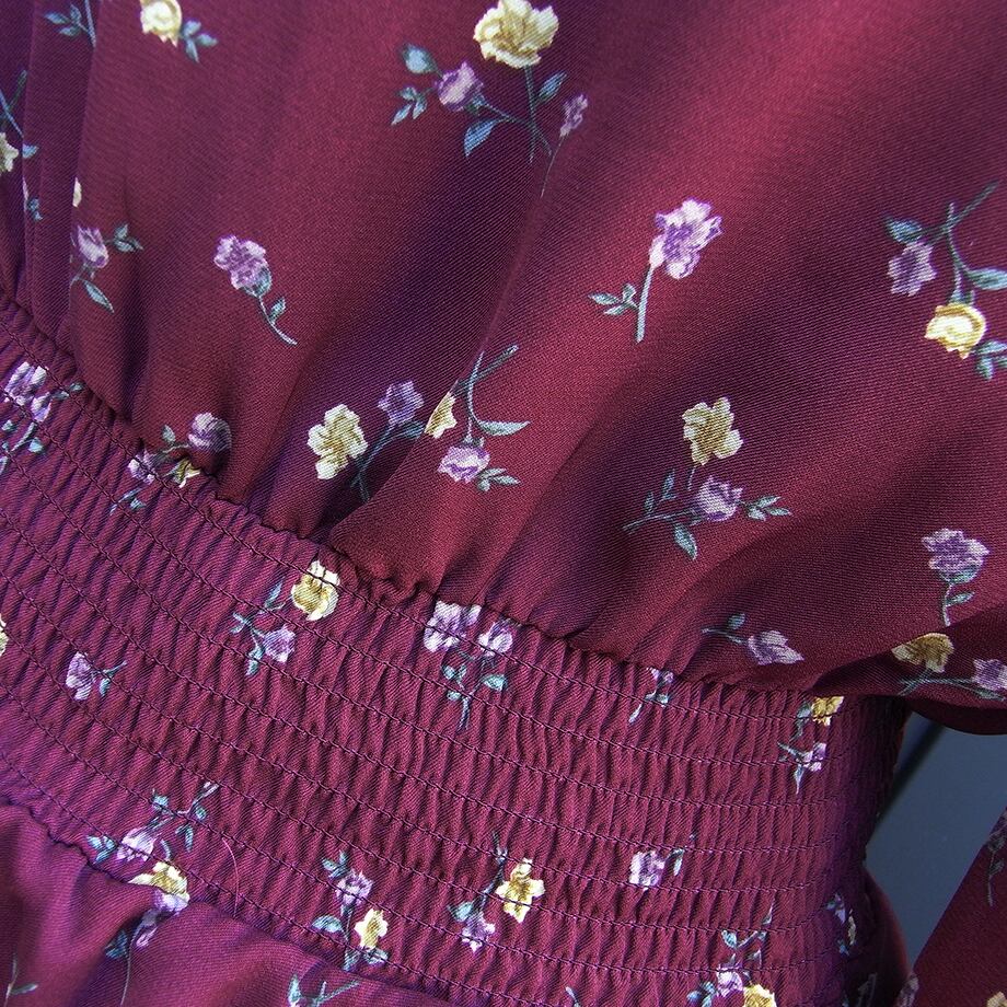 COLZAの70’s風ヒッピーボヘミアンえんじ花柄カットソーです。