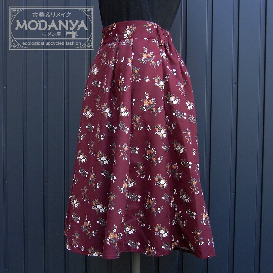 [hu0049]アースミュージック&エコロジー えんじ花柄リボンスカート