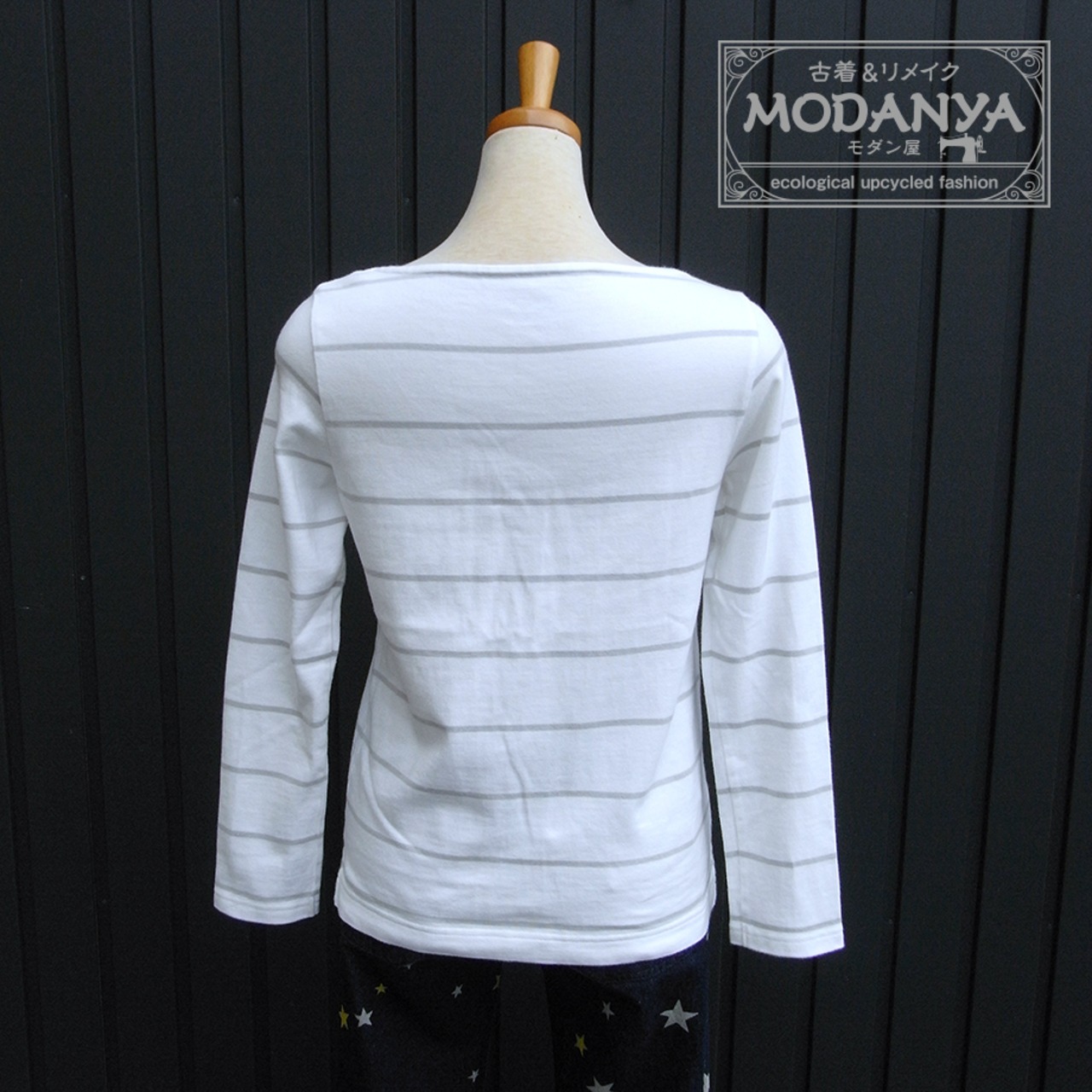 無印良品の白&グレーボーダー長袖厚手Tシャツです。