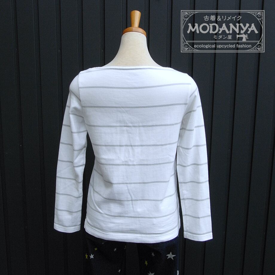 [hu0059]無印良品 白&グレーボーダー長袖厚手Tシャツ S