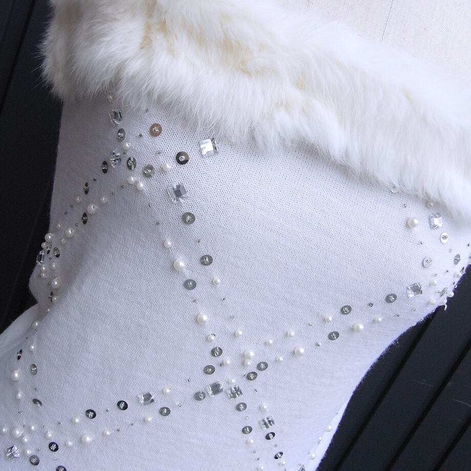 [hu0075]M.deux 白スパンコール刺繍ラビットファー付キャミソール