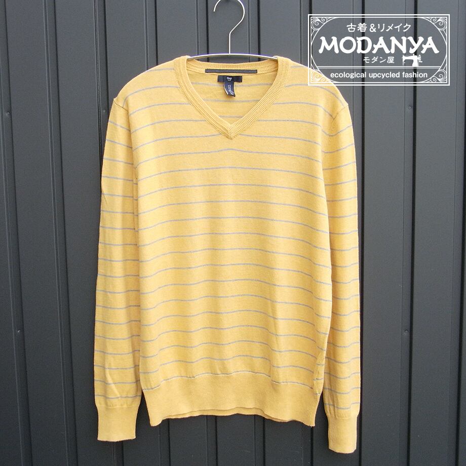 [hu0114]GAP(ギャップ) イエローボーダーVネックセーター S