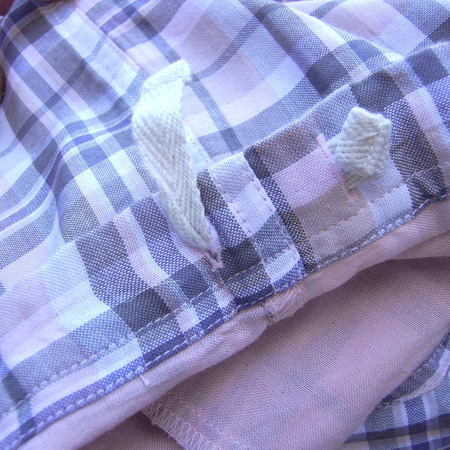 ユニクロのピンクチェックの薄手パンツです。