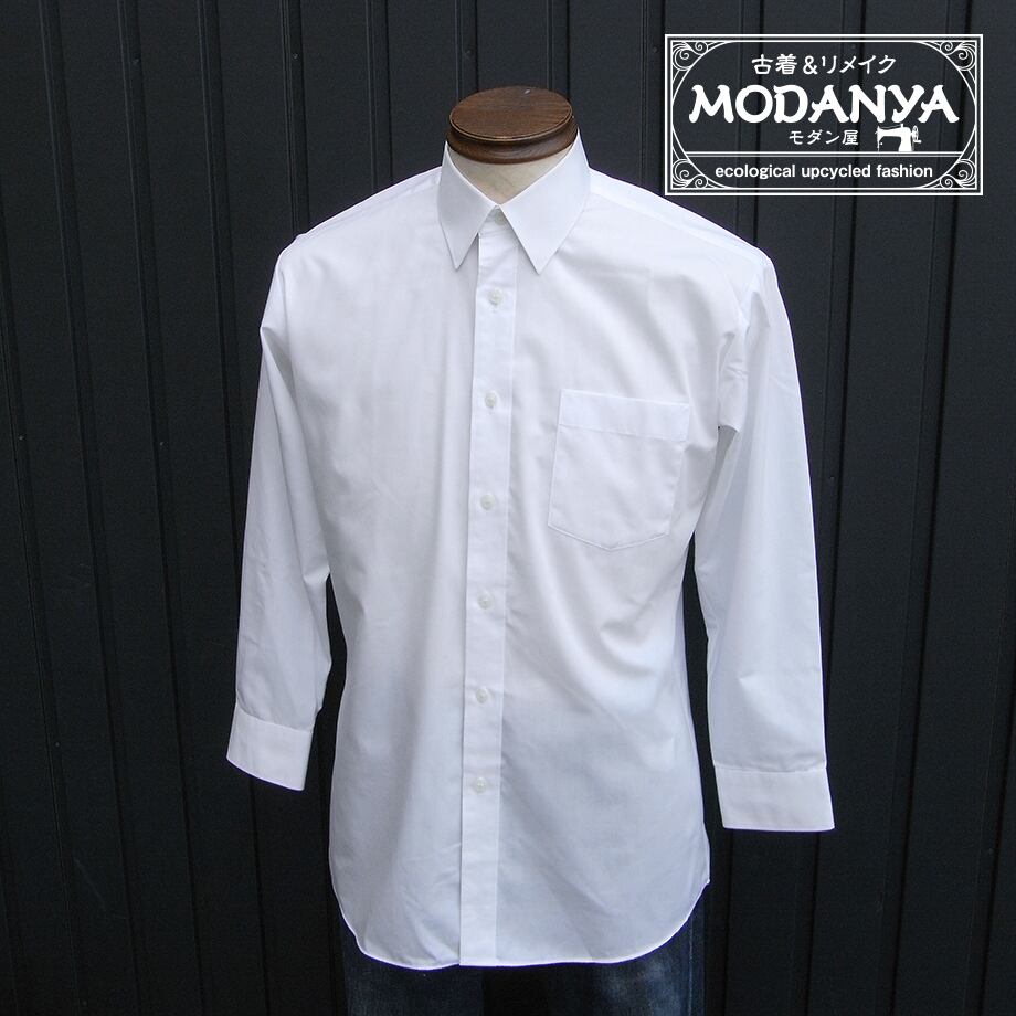 [hu0238]arnaldo bassini 白長袖シャツ(形態安定、ノーアイロンシャツ) M