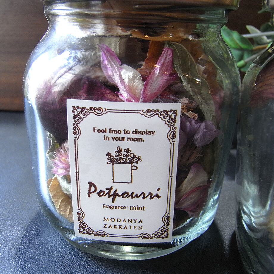 リーフを主にフラワーを合わせた瓶入りポプリです。