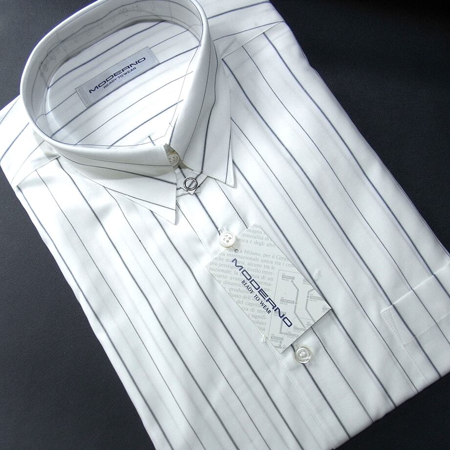 [hu0292]MODERNO 白地グレーストライプ・ワイシャツ 38-M