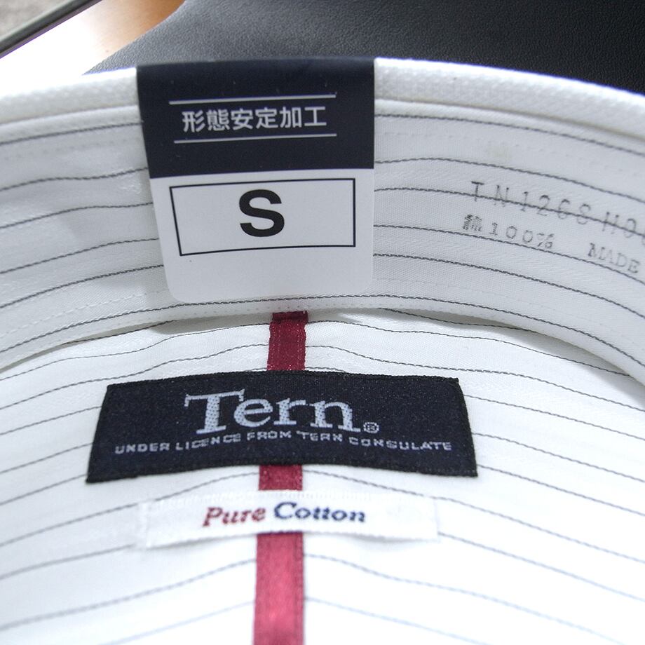 [hu0299]Tern 白地グレーストライプ(襟白)形態安定ワイシャツ S(38)-80