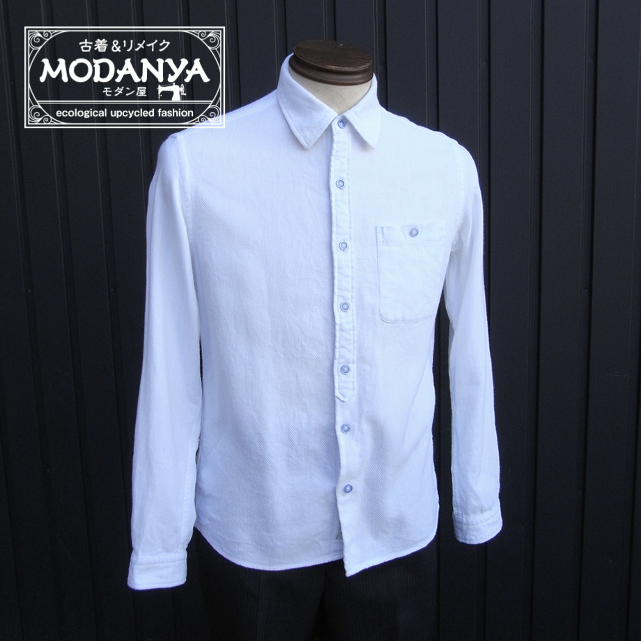 [hu0317]Smart Standard ブルーボタンがポイントの白カジュアルシャツ M