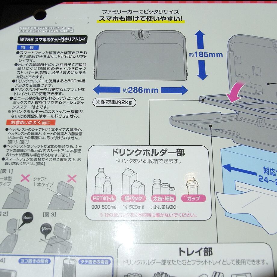 SEIWA W796 スマホポケット付きリアトレイです。