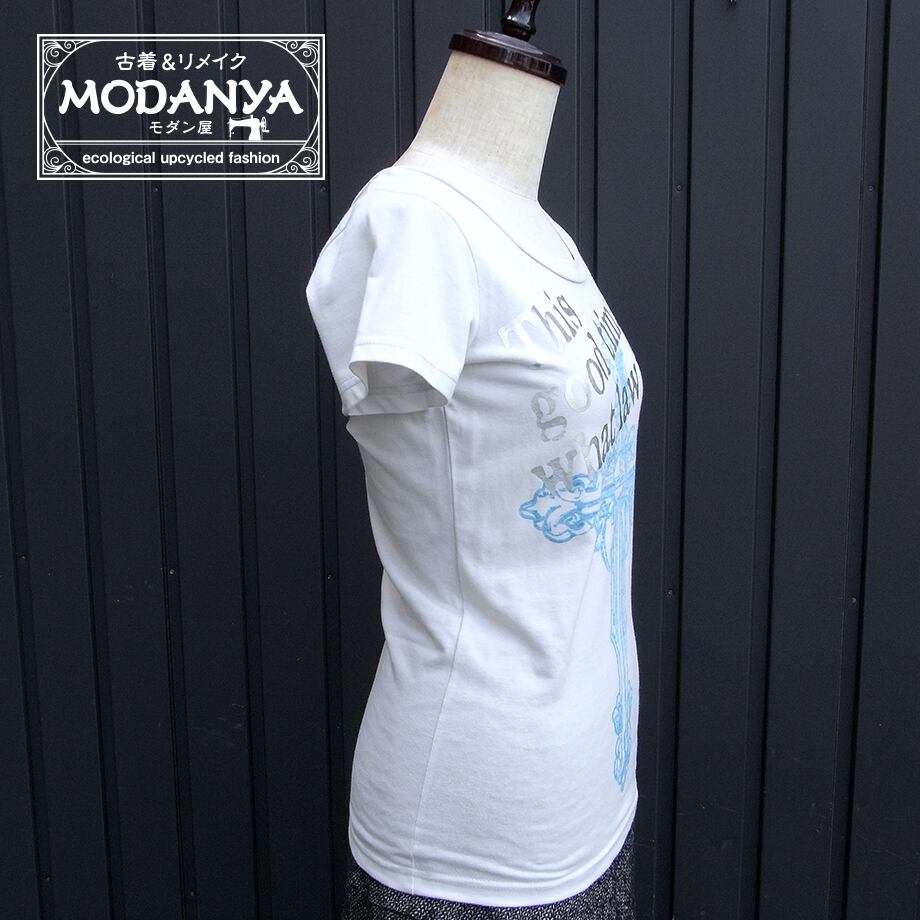 [hu0329]Mao Wao クロス柄ライトグレーTシャツ M