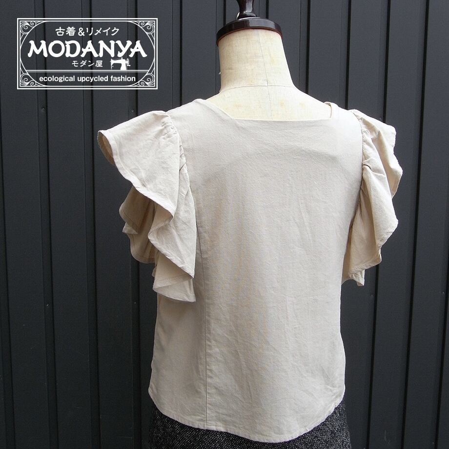 Riche glamourのベージュ色の袖フリル・ブラウスです。