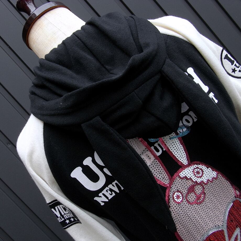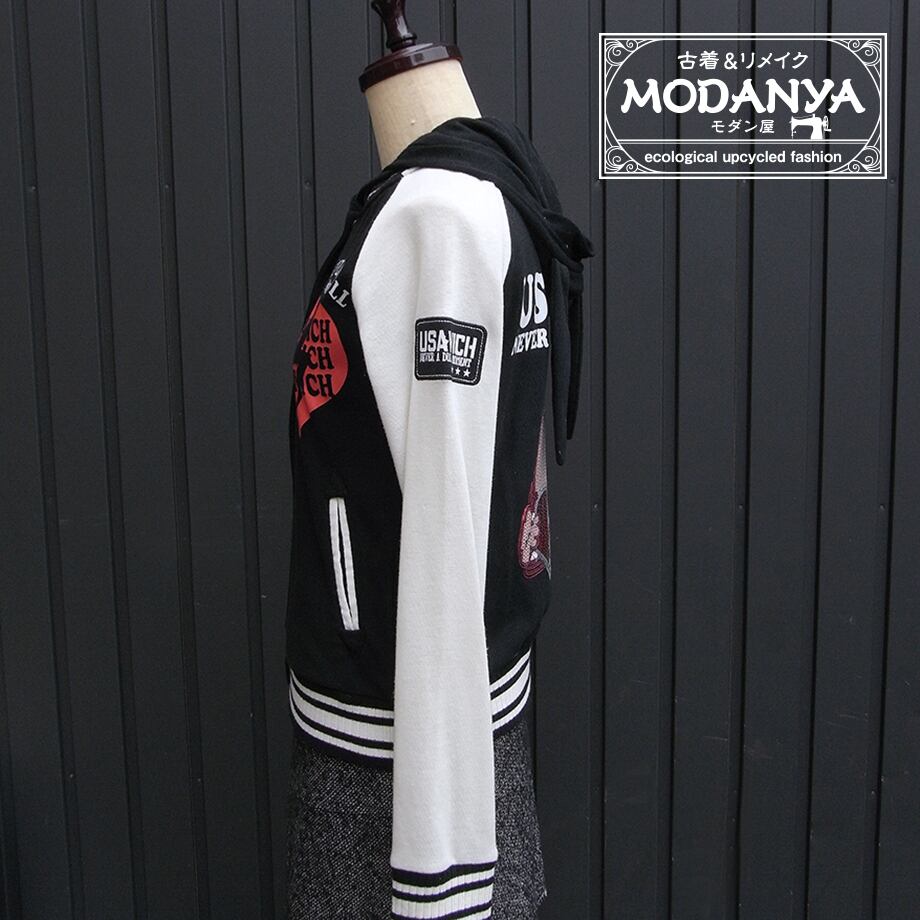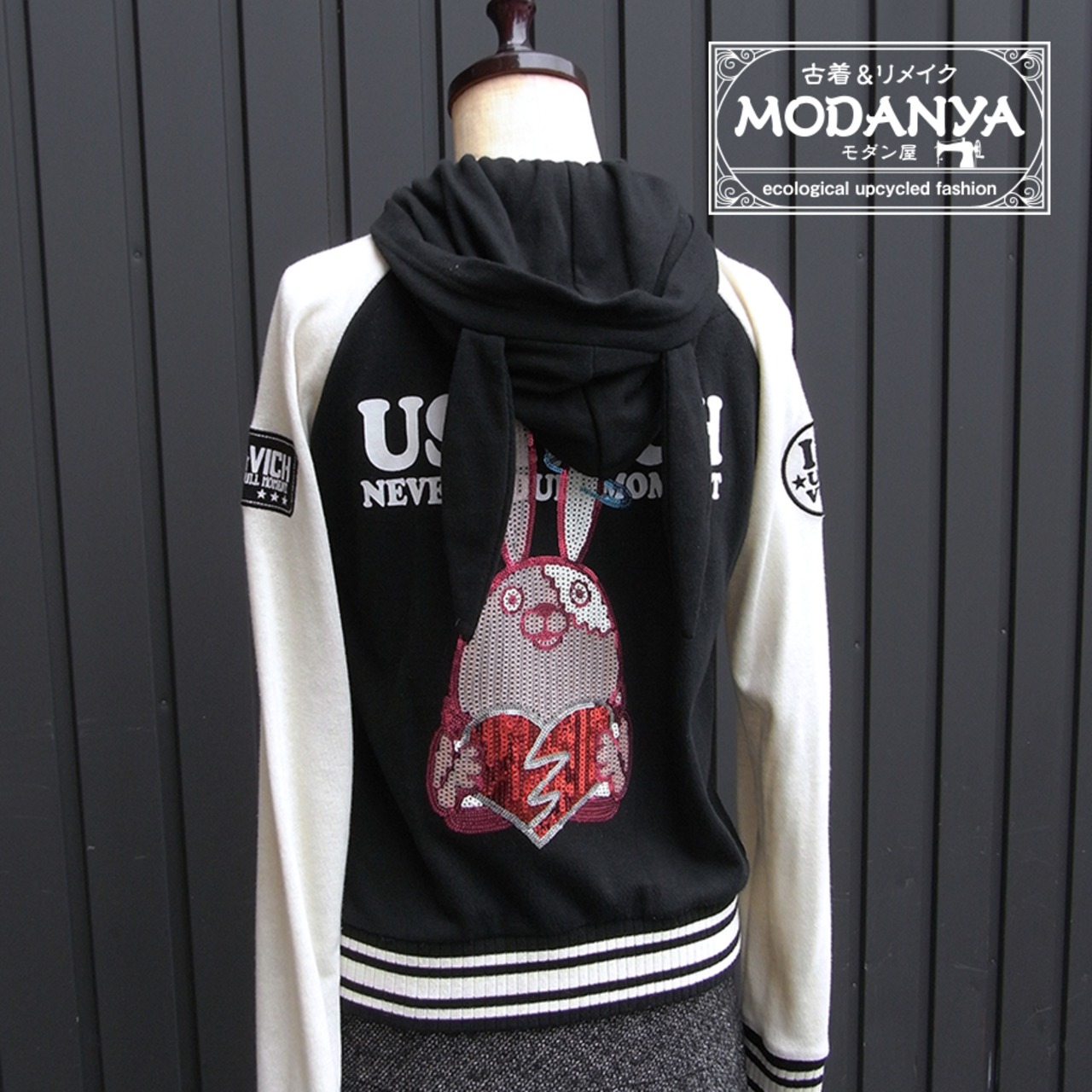 ウサビッチのウサ耳フード付きスタジャンです。
