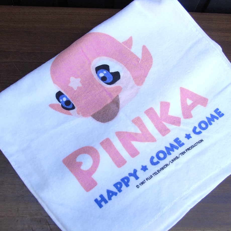 フジテレビのキャラクター 、ハッピーカムカム ピンカちゃんのスポーツタオルです。