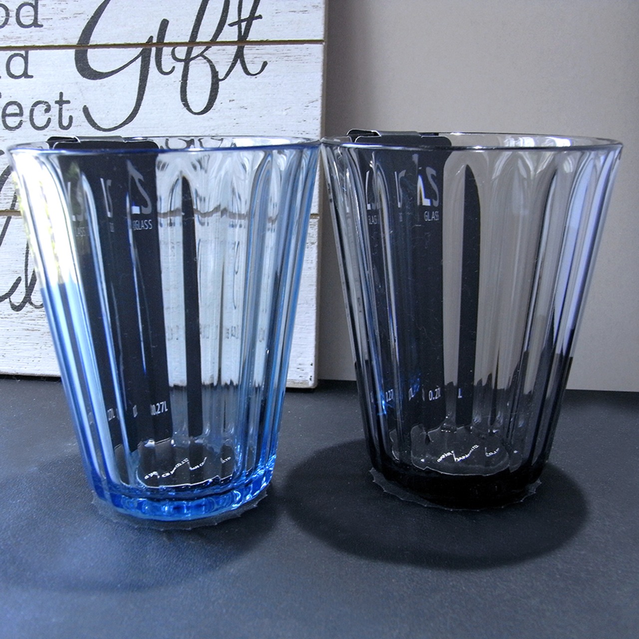 LS GLASS モダンなカラーのプラスティック・グラス(ブルー&ブラウン)2個セットです。