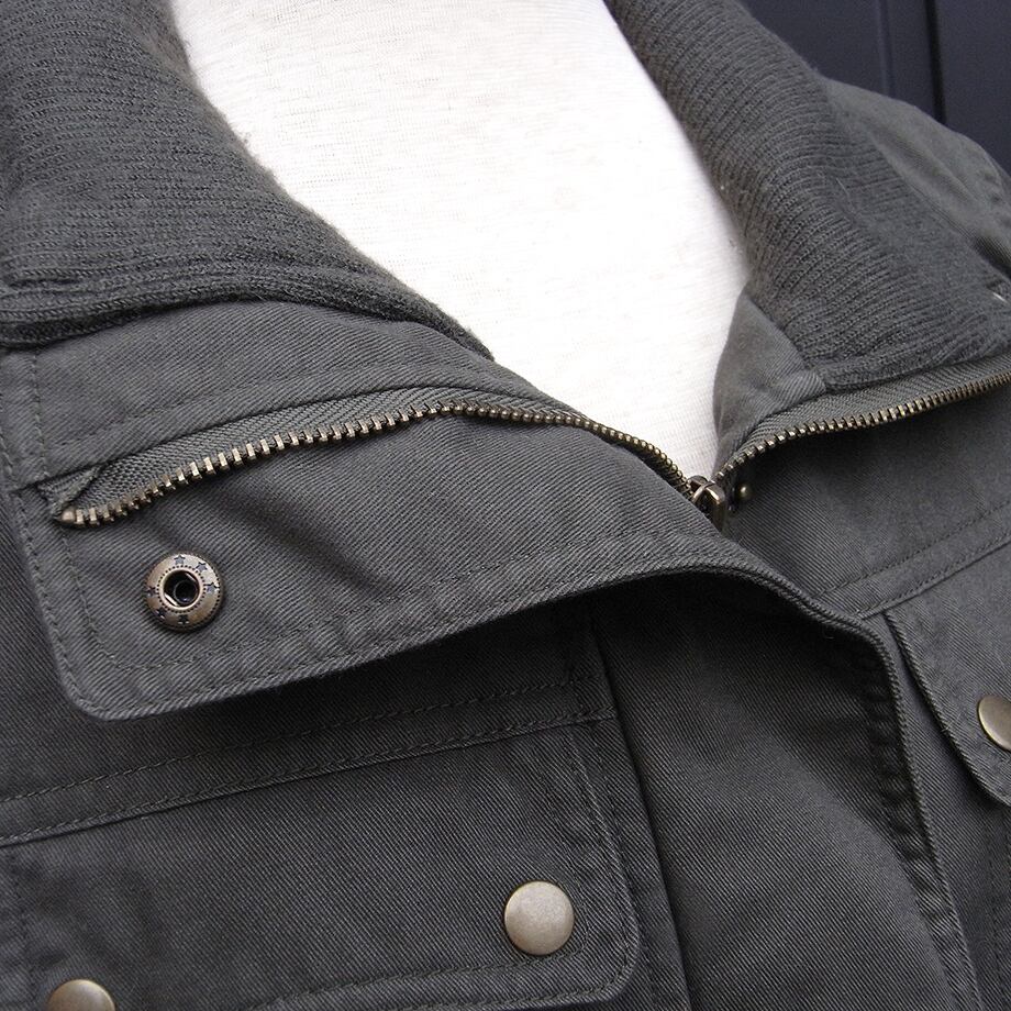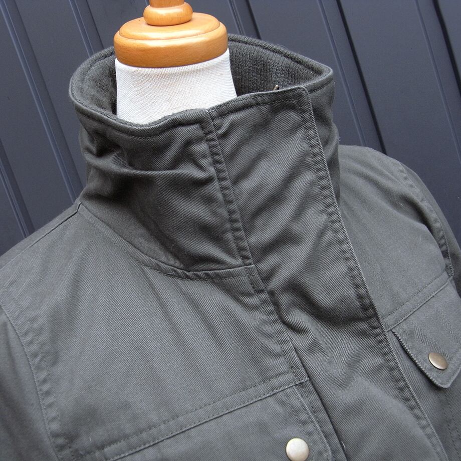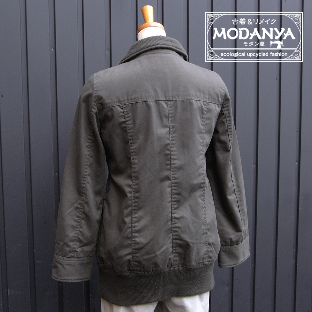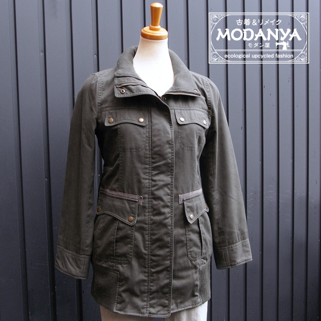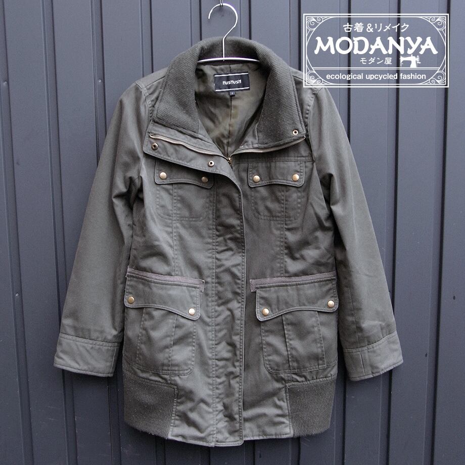 HusHushのカーキ色のミリタリー風ジャケット、コートです。
