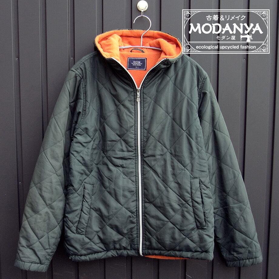[hu0422]EXCUSE カーキ+オレンジの内側ボアブルゾン L